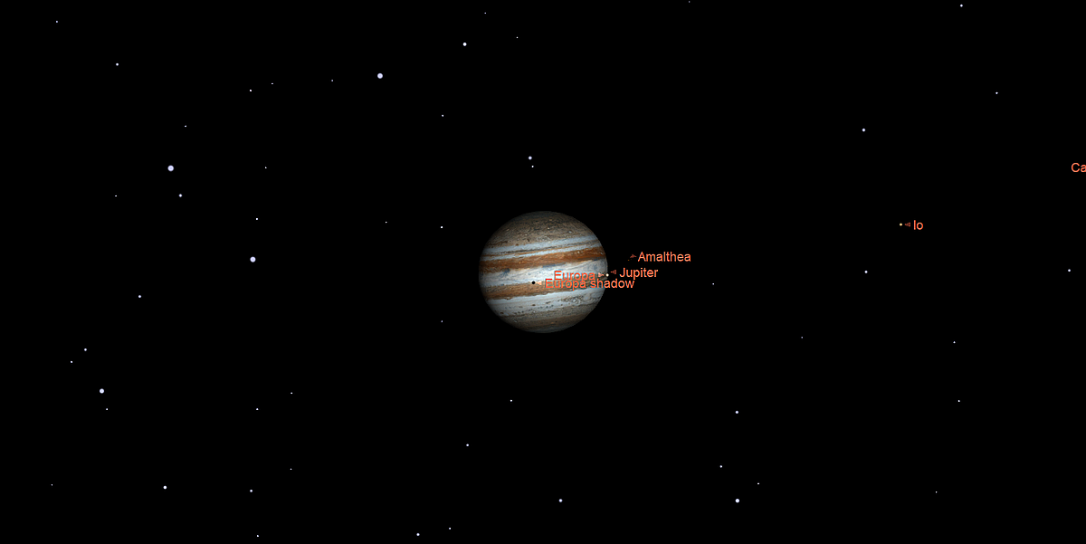 The most favourable evening shadow transits in February are Ganymede - Feb 4th @ 18:30hrs GMT. Callisto - Feb 12th @ 21:10hrs. Europa - Feb 19th @ 21:15hrs. Io - Feb 22nd @ 21:30hrs,