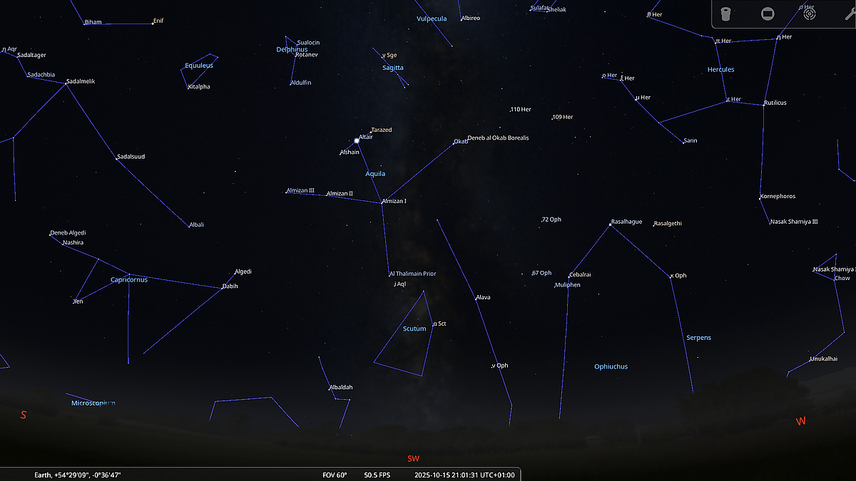 The October night sky Southwest aspect - 21:00hrs BST(Click for full image)