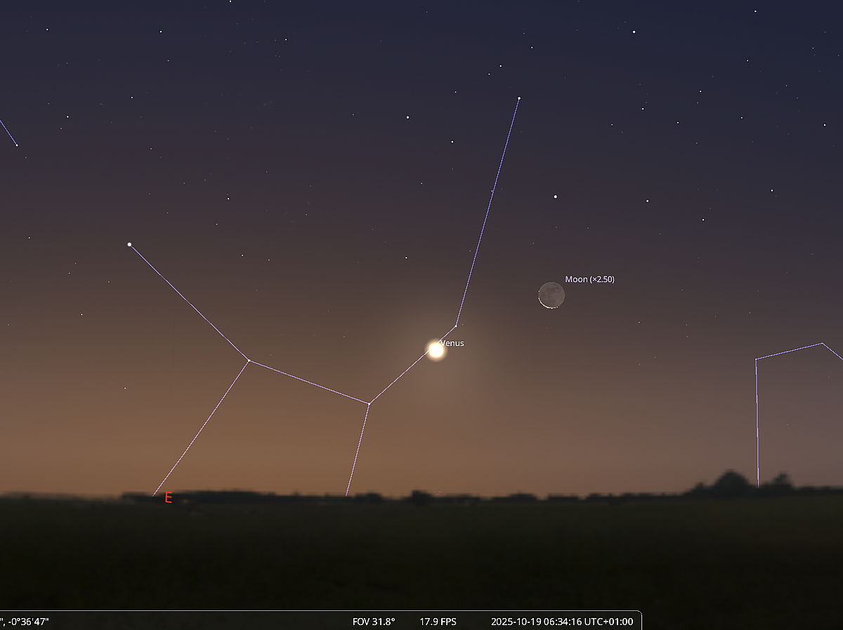 Oct 19th @ 06:30hrs BST - Venus, and crescent Moon.