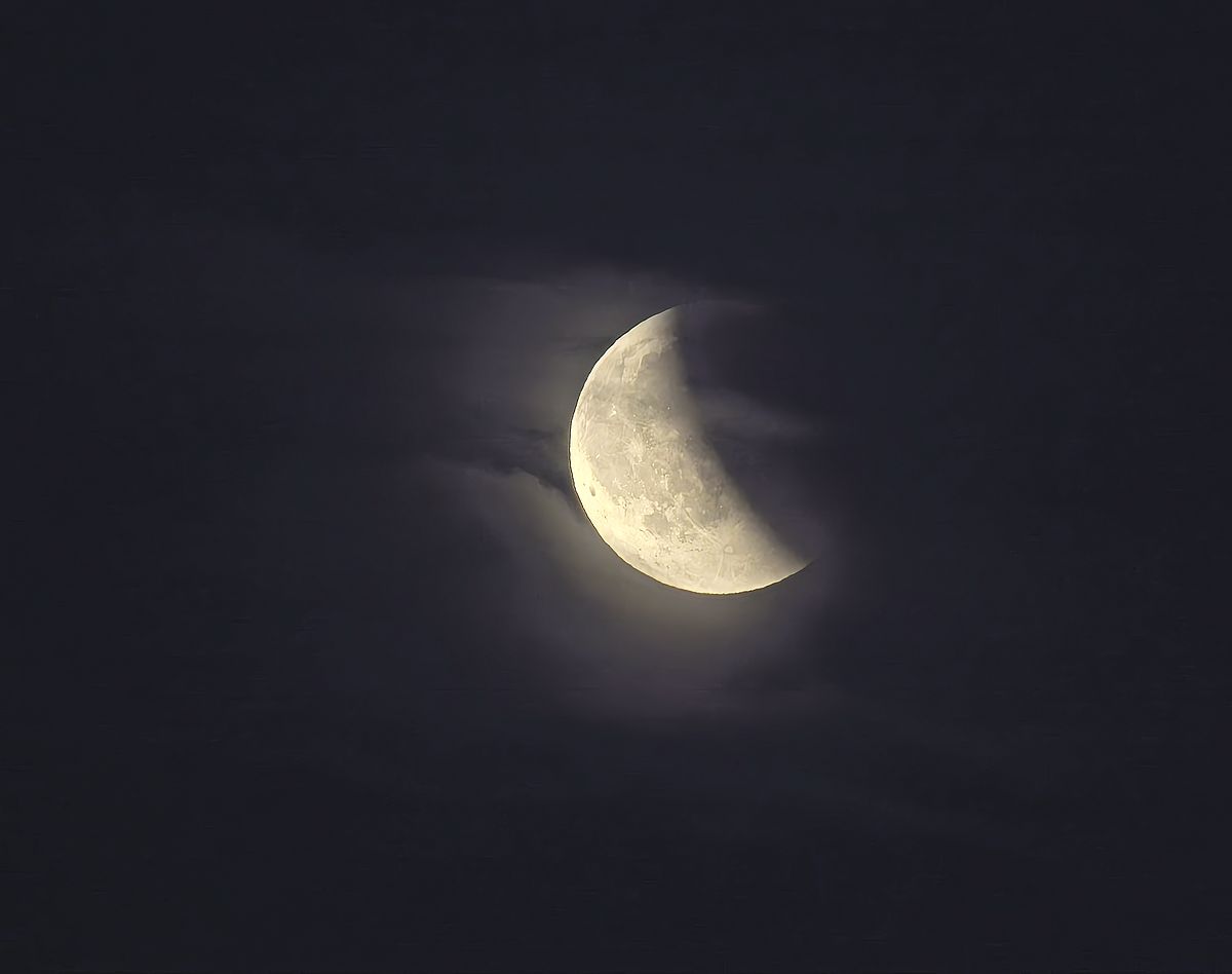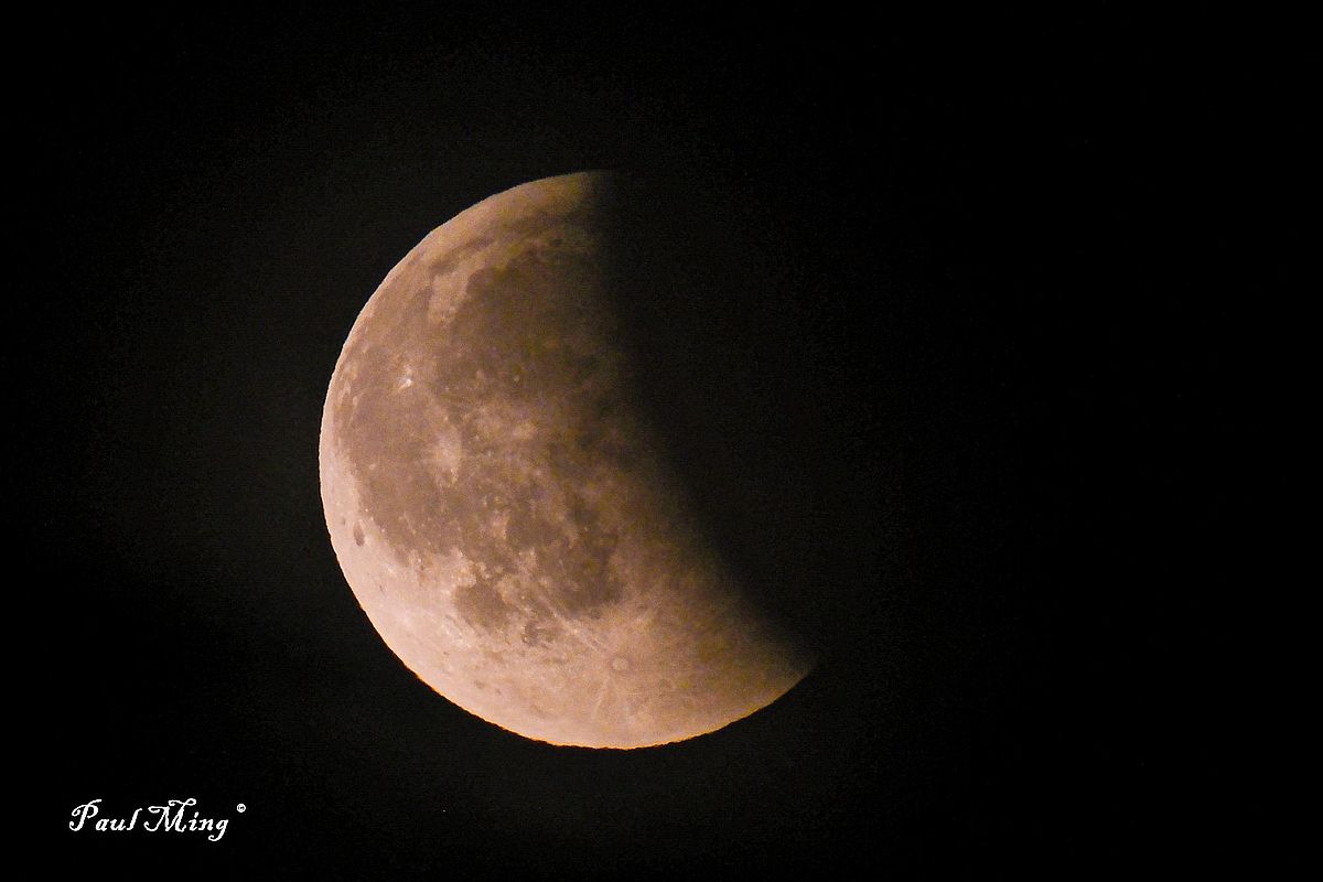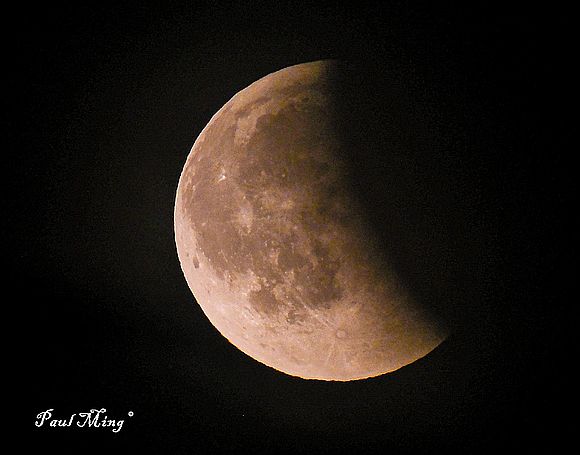 It wasn't until 20:25hrs or thereabouts the Moon finally shrugged off its cloud blanket, Earth's umbral shadow already retreating halfway across the lunar surface. The rest of the 'noticeable' partial stage was occasionally viewed through a thin veil of cloud, but still apparent to the public, some of whom probably thought the Moon was at Quarter phase.