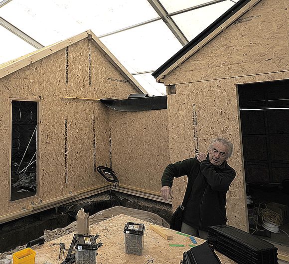 The observatory will include a spacious presentation room connected via a wide storage passage to the main observatory area, which will feature a run-off roof design. During a recent site inspection, John and Mark reviewed the ongoing construction beneath the large marquee and were extremely impressed by the quality of the design and workmanship provided by the specialist contractors, Outsideology.