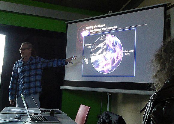 Following welcoming introductions, running order timings and the obligatory H&S notices, there was a minute’s silence for Peter Drew, an amateur astronomer known to many present, who had recently died. It was then time for the first speaker.