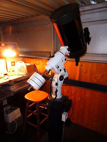 There was time for Mark and John L to visit the nearby YAS observatory 'shed - container' complex which housed the societie's telescope collection. Several large 'optical beasts were housed in an upper story, the roof of which could be opened allowing some great vistas for observations. It was an impressive set up, and YAS should be commended.