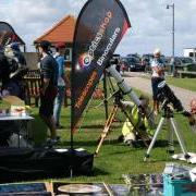 Our location for the Solar viewing pitch this year turned out to be adjacent to the paddling pool - near the old trampoline pits. Not quite where we thought we were going to be. But, we were next to Marcus at Grovers Optics, who had heroically come along for all three days of Regatta this year. Access was much easier for loading, so it proved quite a successful location. Better still, there were some nice sunspot groups to observe. The only down side was the gusty wind which played havoc with the poster boards and any items not nailed down on Marcus’s trestle tables.