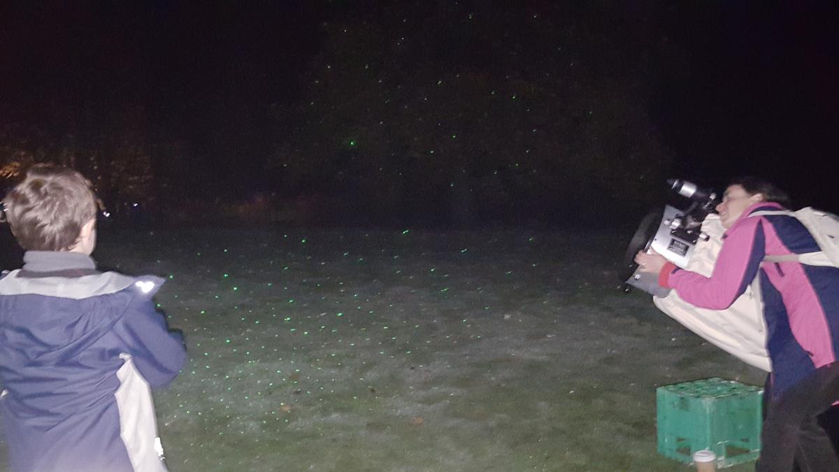 Luckily we were able to drive onto the field, and scope deployment was far easier than we had being anticipating. First on the agenda was to terrify all and sundry with tales of impending doom (well it was Halloween). This time, of course, the ‘unseen terror’ also known as asteroid TB145t, (christened ‘Spooky’ by Nasa) hurtled passed Earth at 17.05h, approximately 300,000 miles (483,000km) distant. A chilling reminder that ‘things can still go bump in the night’ and given enough time probably will one day.