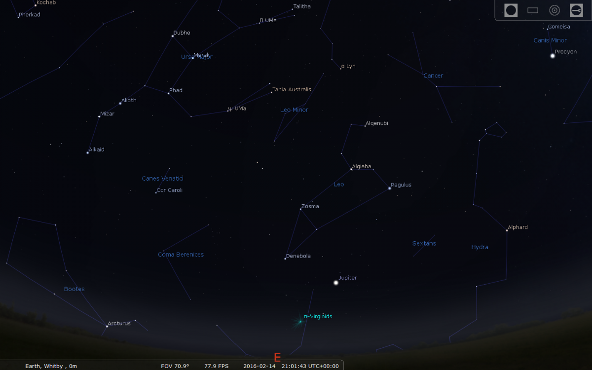 The comet, which is a binocular object, (although it might as well be on the far side of the moon for all the good the weather is affording) passes around 8 degrees lower right of the pole star Polaris at the start of February, look for a fuzzy blob anytime throughout the evening or night as the comet will be circumpolar. The comet passed closest to Earth on Jan 17th a safe distance of 108 million km (67 million miles).
