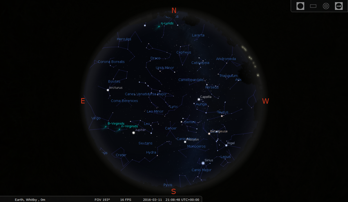 No major showers. However at the very end of March you may spot a few Viginids, which are very slow moving and have long paths. As usual early morning hours are more favourable